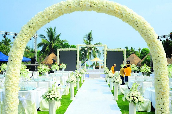 一块生机蓬勃绿意盎然的草坪或者是鸟语花香的郊外别墅的花园,又或是波光潋滟的湖边草坪,经过婚庆公司的精心装点,在暖暖的阳光下,在绿色的草地间与亲朋好友共同投入大自然的环抱,共同享受着这一场别致的草坪婚礼。下面的是草坪婚礼策划之会场布置方案,希望能给你的婚礼提供可用的建议!