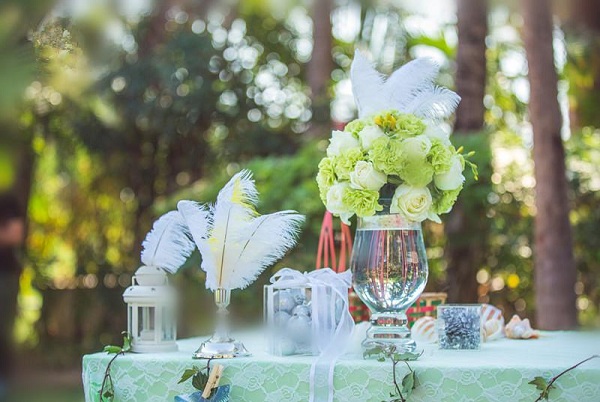 合肥婚宴-糊涂鸟婚礼网提醒您:背景可以是附和草坪的嫩绿色、奶黄色,也可以是粉嫩的淡粉色,天空的蓝色,神秘的紫色缎带做布置,间隔从上方垂下 ,拖曳于舞台上。其间点缀以串了白色羽毛及彩色珠子的银色长线, 从上方垂下,或长或短,距离或宽或窄。舞台顶端搭个架子,用常春 藤缠绕,略垂下各色缎带和羽毛珠帘舞台四周摆放金色或白色艺术立 柱,柱顶摆放各色花球,垂下常春藤。新人自制婚照展架背景可以立在舞台前檐,充满自然气息的草品婚礼,新人们可以尝试着让你的婚礼更浪漫点。