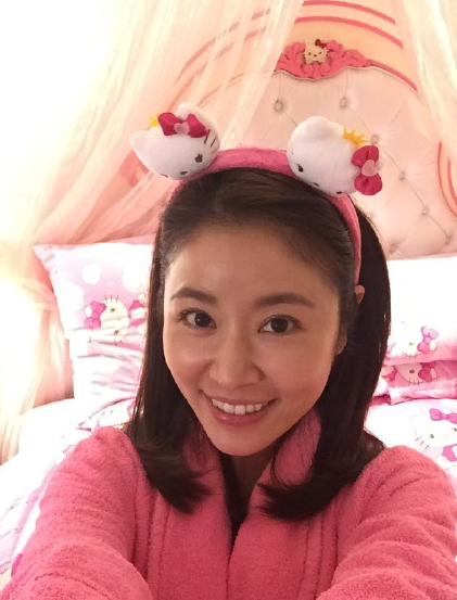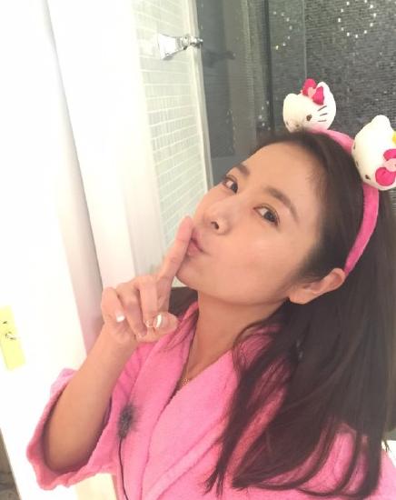 照片中,林心如头戴HELLO KITTY头饰,身穿粉色睡袍,身处满是HELLO KITTY的卧室拍照,还不时的嘟嘴卖萌,显得娇俏可爱。